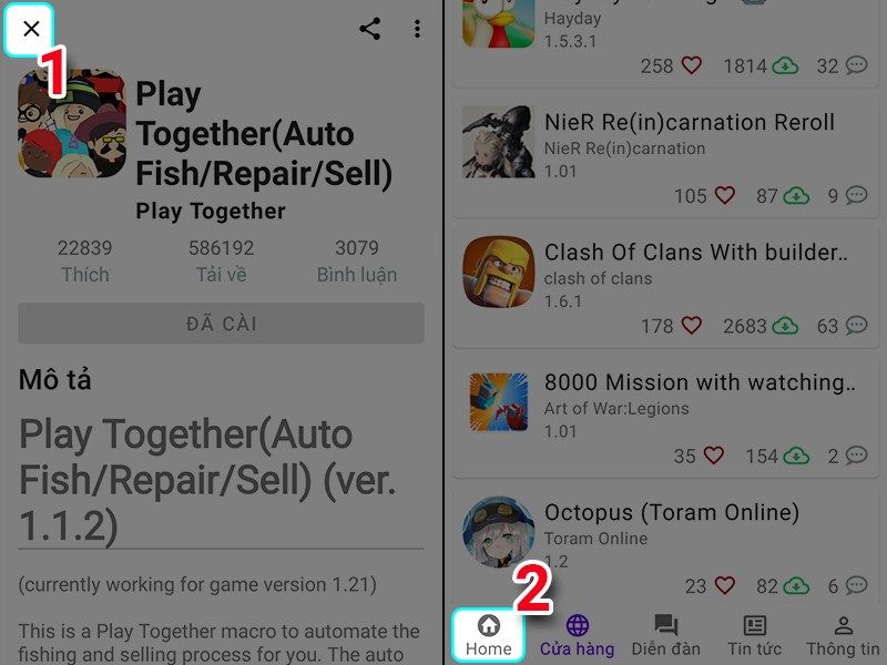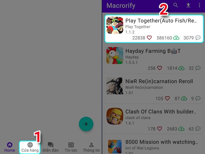 Bước 11 : Quay ra màn hình ứng dụng Macrorify bạn nhấn vào cửa hàng và chọn vào game Play Together