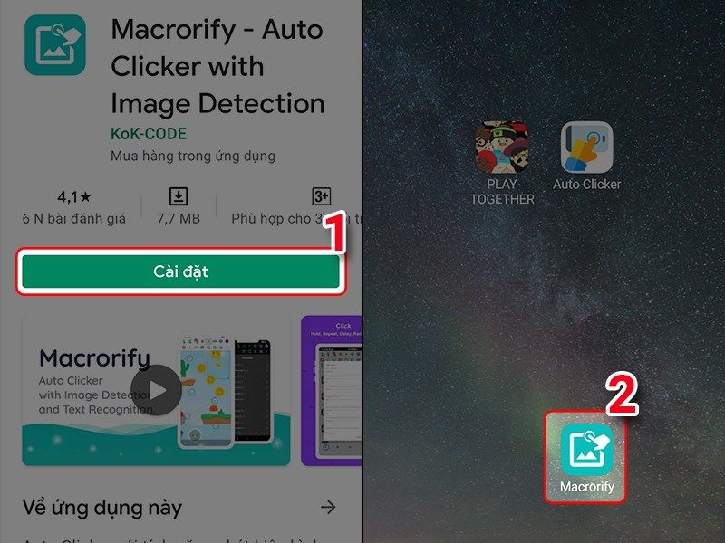 Bước 1 : Vào CHPLAY và tim kiếm cài đặt ứng dụng Macrorify và truy cập vào ứng dụng