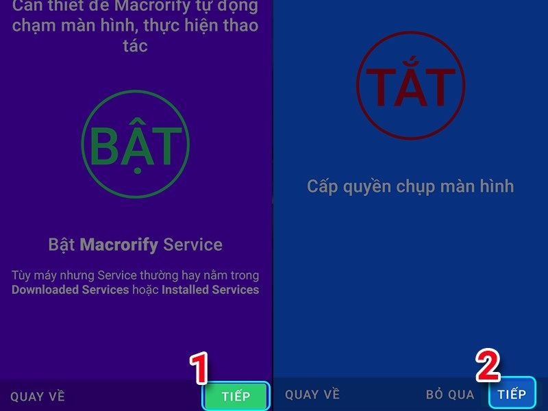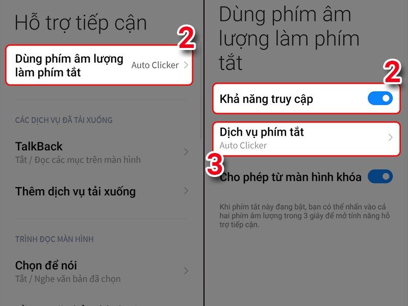 Dùng phím âm lượng làm phím tắt > sau đó mở khả năng truy cập và nhấn vào dịch vụ phím tắt > chọn ứng dụng bạn nhấn vào ứng dụng Macrorify và chọn cho phép.