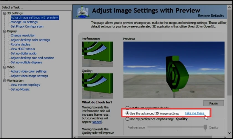 Bước 2 khi này,bạn hãy tiến hành tuỳ chỉnh nâng cao bằng cách chọn Use the advanced 3D image setting sau đó bạn hãy nhấp vào mục Take Me There
