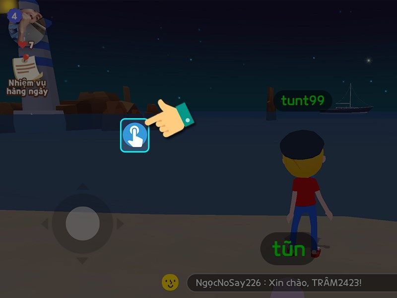 Bước 18 : trong giao diện game bạn nhấn vào biểu tượng bàn tay