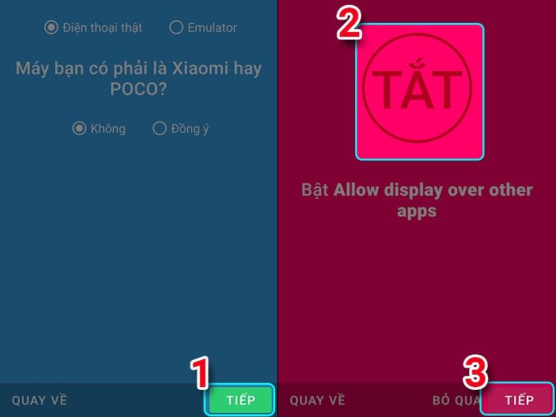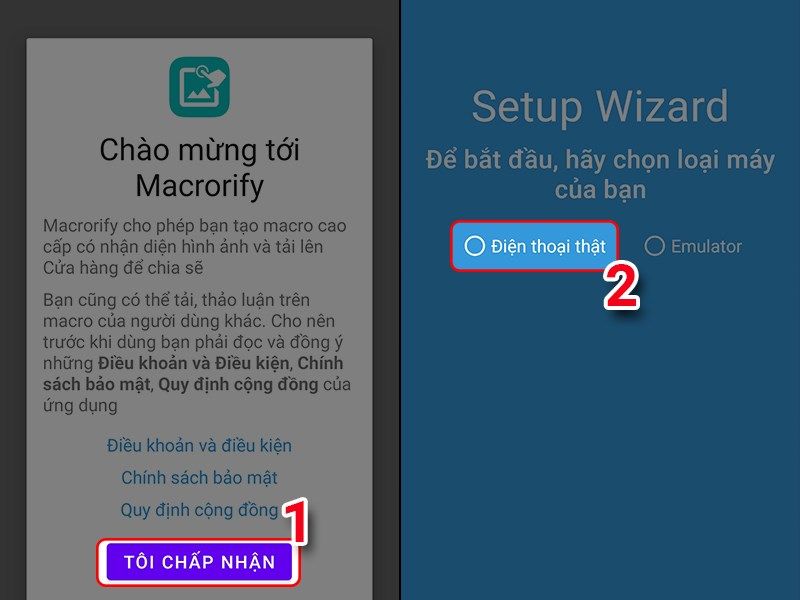 Cài đặt ứng dụng macrorify > nhấn vào ứng dụng trên màn hình chính > tôi chấp nhận khi có thông báo mới hiện ra,sau đó bạn chọn điện thoại thật > chọn tiếp phía dưới màn hình và tiếp theo chọn tất sau đó chọn tiếp > mở tính năng cho phép hiện thị trên các ứng dụng khác,rồi nhấn vào biểu tượng mũi tên để quay ra và chọn tiếp