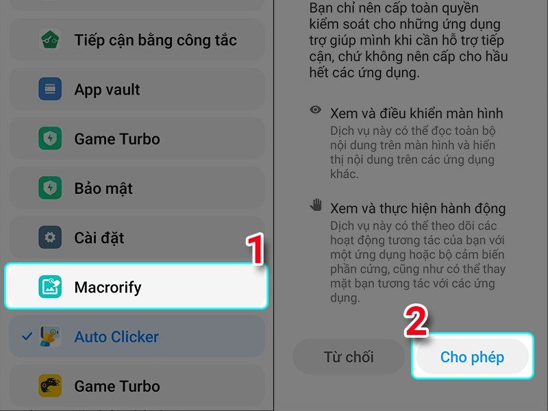 Bước 6 : ở màn hình chọn ứng dụng bạn nhấn vào ứng dụng Macrorify và chọn phép